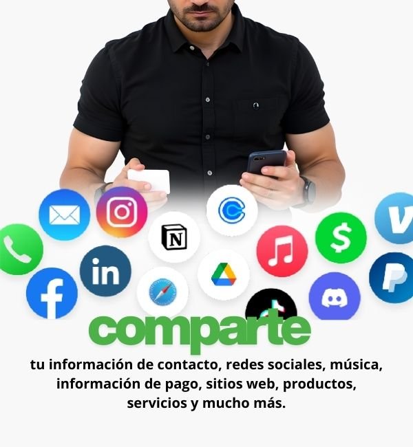 Comparte lo que quieras. Redes Sociales, Sitios web, agenda, link de pagos …